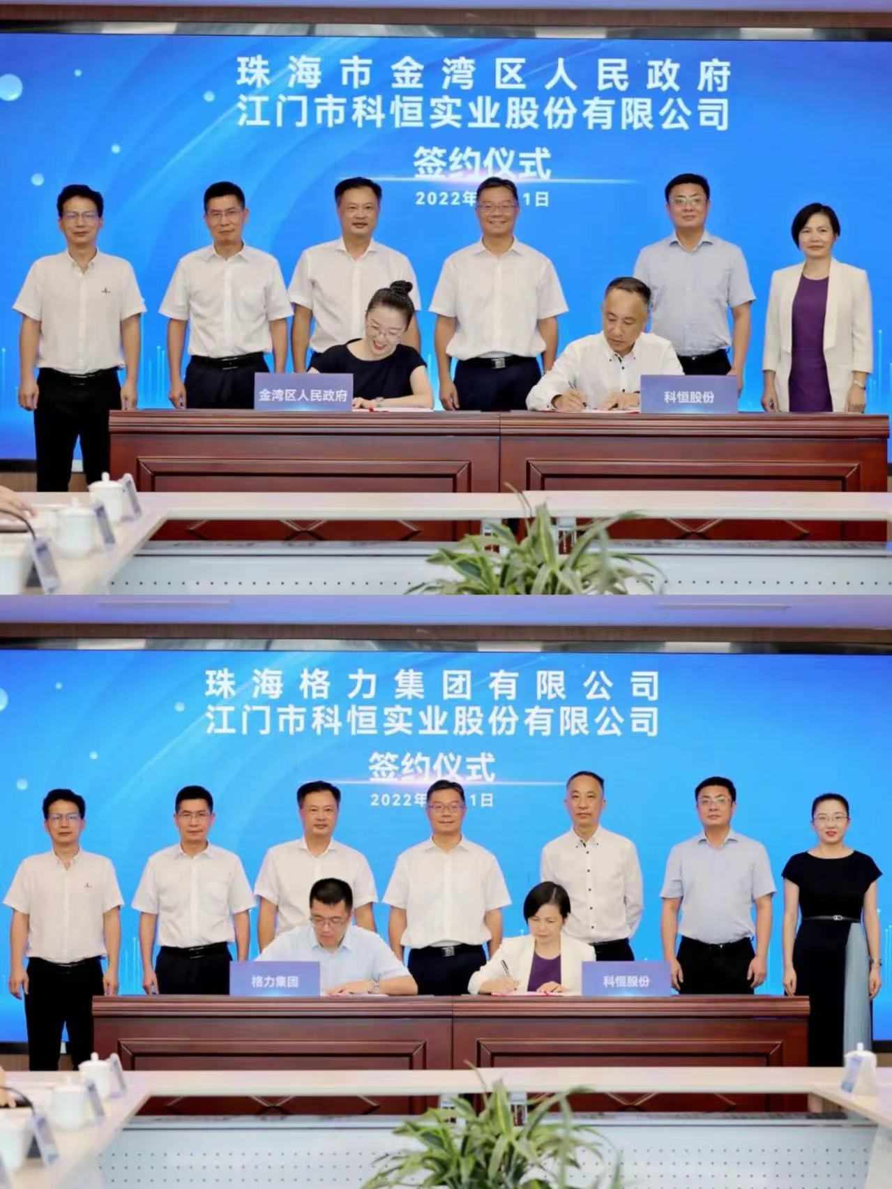 2022年7月,珠海市金灣區人民政府、珠海格力集團與科恒股份簽訂合作協議,科恒新能源材料及裝備項目將落戶珠海金灣 。
