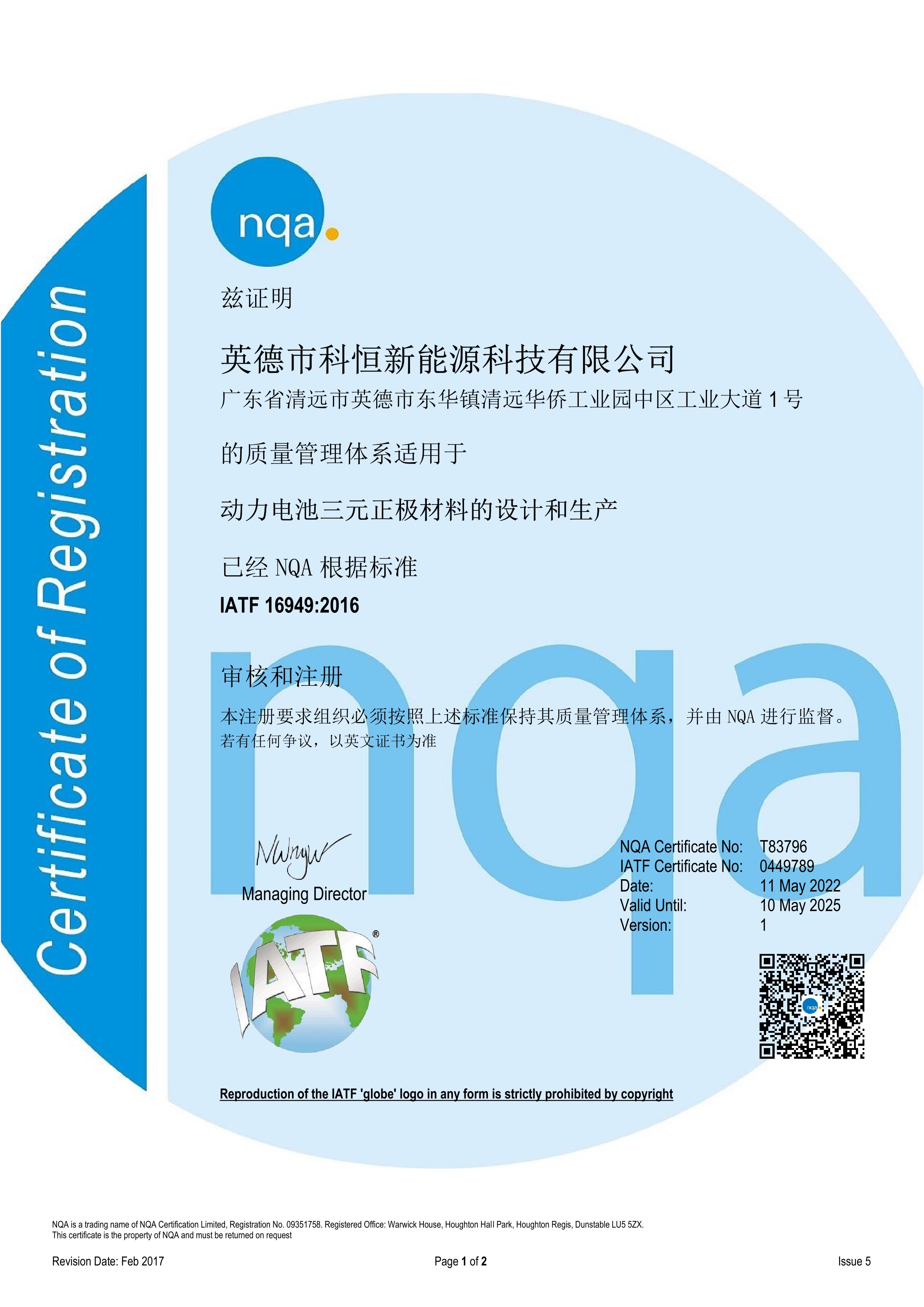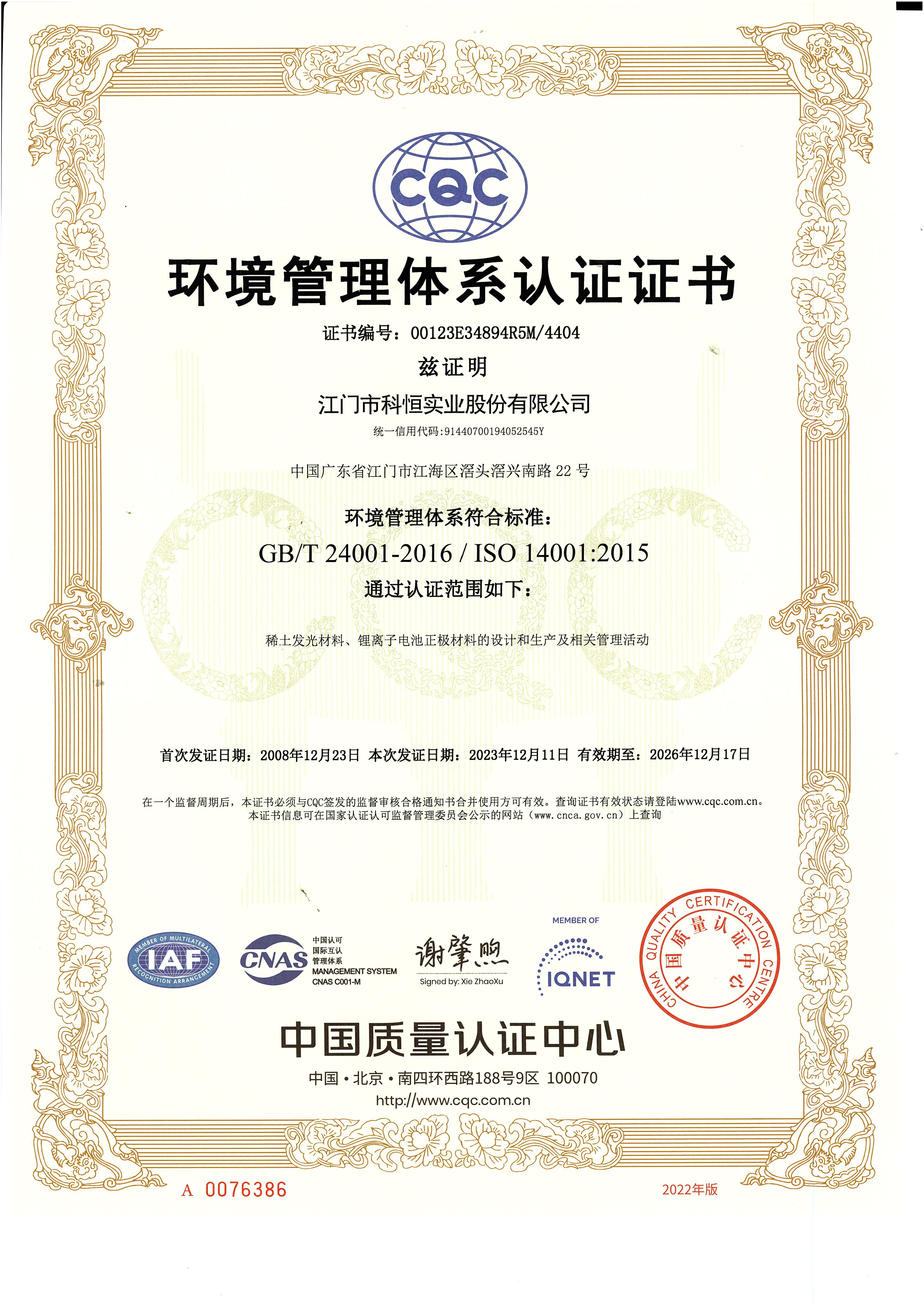 科恒堅持“科技卓越、永恒追求、質量第一、客戶至上”的質量方針,設立各級質量控制體系,保證產品質量。公司先后通過了ISO9001質量管理體系認證和ISO14001環境管理體系認證。公司以滿足客戶需求為宗旨,以卓越的科技成果、完善的制造過程,制造一流的產品、增值的服務、共享的價值,讓客戶滿意。